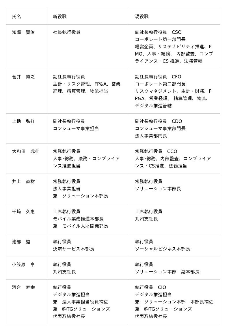 3)執行役員の分掌変更:9名(2026年4月1日付)