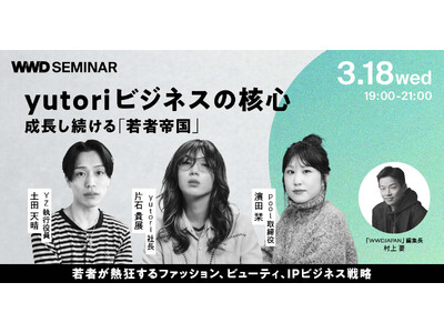 そこで今回のセミナーでは、yutoriのファッションとビューティ、IPビジネスを大解剖。片石社長をはじめ、グループの幹部社員が続々登壇し、若い世代の熱狂を集めるファッションとビューティ、IPビジネスの全貌と野望に迫ります。