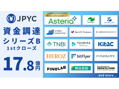 日本円ステーブルコイン「JPYC」を発行・運営するJPYC株式会社(本社:東京都 千代田区 代表取締役:岡部 典孝、以下当社)は、シリーズBラウンドのファーストクローズにおいて、アステリア株式会社をリード投資家とし、総額17.8億円の資金調達を完了する予定です。