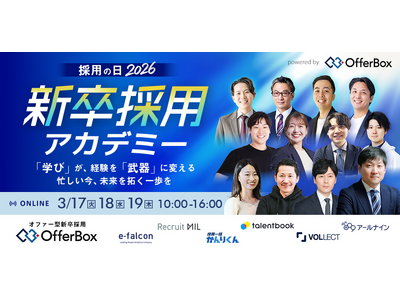 株式会社i-plug(大阪市淀川区/代表取締役 CEO:中野 智哉)が運営する新卒オファー型就活サービス「OfferBox(オファーボックス)」は、人事担当者を対象とするイベント「採用の日2026 新卒採用アカデミー」を3月17日(火)~19日(木)にオンラインで開催します。
