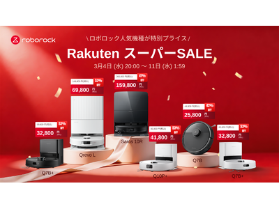 ロボット掃除機やスティック掃除機を製造・開発するBeijing Roborock Technology Co.,Ltd.(本社:中国北京、社長:全剛)は、2026年3月4日(水)20:00から2026年3月11日(水)1:59まで、楽天市場で開催される「楽天スーパーSALE」に参加し、フラッグシップモデルである「Saros 10R」やコンパクトながら高機能モデルの「Q10P+」をはじめとする人気製品が最大53%オフとなるビッグセールを実施します。