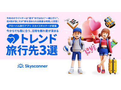 Skyscanner Japan株式会社(本社:東京都港区、以下スカイスキャナー)は、「トラベルトレンドレポート2026」の調査結果から見えた「旅行者の価値観」と、今年のホワイトデーにおすすめのトレンド旅行先を発表いたしました。
