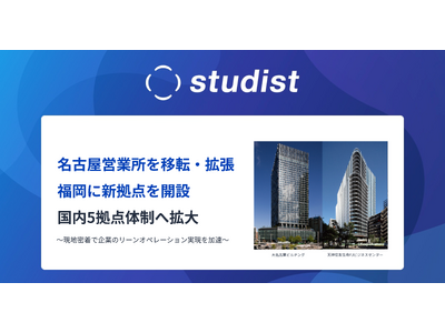 リーンオペレーションの実現を支援する株式会社スタディスト(本社:東京都千代田区、代表取締役CEO:鈴木悟史、以下「スタディスト」)は、事業拡大に伴う国内サポート体制の強化を目的として、2026年3月1日付で「名古屋営業所(中部拠点)」を移転・拡張し、新たに「福岡営業所(九州拠点)」を開設いたします。