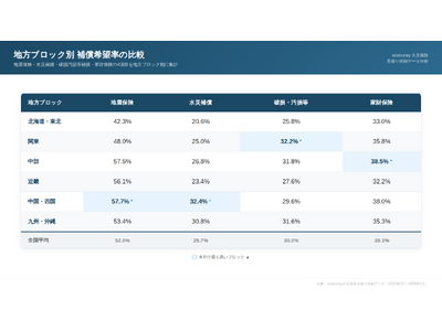 水災補償は長崎県が61.5%と突出し、豪雨災害の経験がある西日本エリアで全国平均を大きく上回るなど、補償選びに地域ごとのリスク意識が色濃く反映されている実態が浮き彫りとなりました。