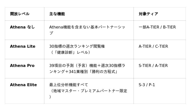 Athena(アテナ)」をパートナー企業に段階的に開放する点です。