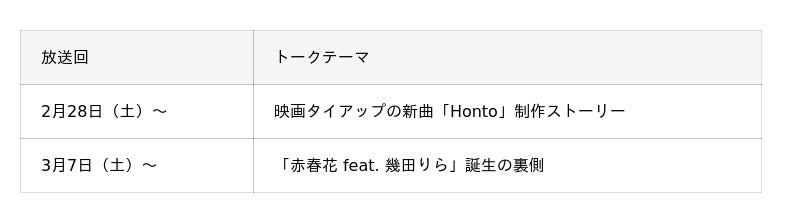 番組前半は、sumikaが担当する映画『ドラえもん 新・のび太の海底鬼岩城』の主題歌「Honto」制作ストーリーを、アレンジを手掛けるRyo’LEFTY’Miyataと共に語ります。楽曲に隠された遊び心やレトロな音作りへのこだわり、メンバー提供によるカップリング曲のエピソードなど、バンドの多才な一面にも触れています。