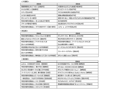 ・助成対象の事業・活動分野:1.食・食育 2.消費者の権利 3.福祉、健康 4.子ども・子育て 5.次世代支援 6.教育、文化、スポーツ 7.環境保全 8.人権、平和、国際協力・交流 9.防犯・防災・減災、災害復興支援