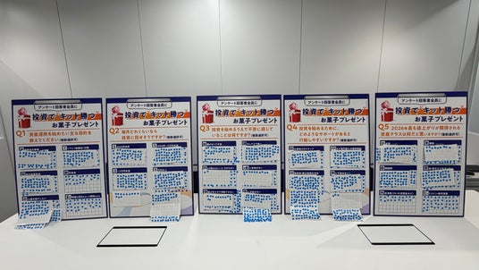 また、調査アンケートにご回答いただいた方には、ノベルティとして「投資にきっと勝つ!特製お菓子」をプレゼントさせていただきました。個別相談では、初心者の方から経験者の方まで、日頃のお悩みや疑問について直接お話しをうかがうことができ、大変貴重な時間となりました。