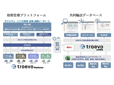 本取り組みは、動態管理プラットフォーム「traevo Platform」に蓄積された運行実績データを活用し、中長期の共同輸送相手を検索できるデータベース「traevo noWa」を構築。輸送情報を“共有財産”へと転換することで、従来困難であった企業横断型の共同輸送を可能にしました。