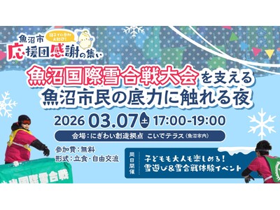 シビレ株式会社(本社:東京都中央区、代表取締役:鈴木翠)は新潟県魚沼市の受託事業として、2026年3月7日(土)、魚沼市内にて交流イベント「魚沼国際雪合戦大会を支える魚沼市民の底力に触れる夜」を開催します。