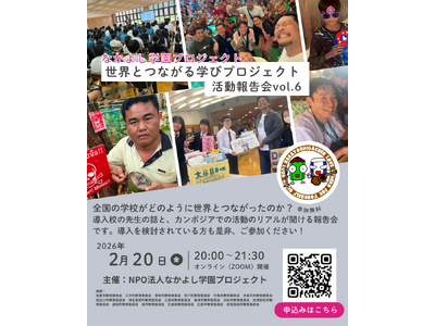 特定非営利活動法人 なかよし学園プロジェクト(所在地:千葉県松戸市、代表:中村雄一)は、オンライン(Zoom)にて「世界とつながる学びプロジェクト 活動報告会 Vol.6」を