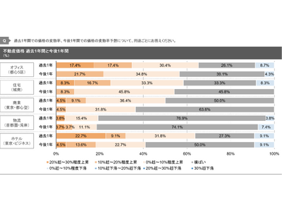 - 不動産価格については、「オフィス」、「住宅」は 50%以上の回答者から上昇が予想されている。足許の好調な運営パフォーマンスが背景にあると思われる。金利上昇下、賃料上昇が期待されるアセットタイプに人気が集まる。