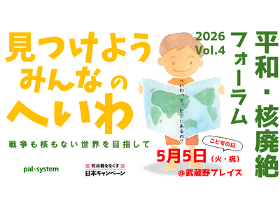 5月5日(火)に一般社団法人核兵器をなくす日本キャンペーン(本部:豊島区東池袋、田中煕巳代表理事)と合同開催する「平和・核廃絶フォーラムvol.4『見つけよう みんなのへいわ』」では、本アワードの紹介や講演のほか、会場でのスタンプラリーやフェアトレード商品の試食などを予定します。