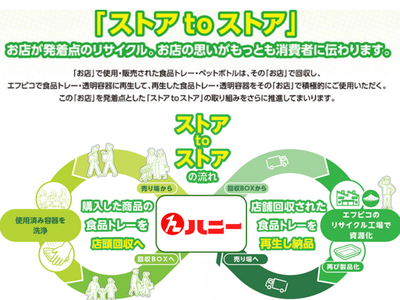 株式会社エフピコ(本社:東京都新宿区、代表取締役会長:佐藤 守正、以下「エフピコ」)と協同組合ハニー(本社:福井県福井市、理事長:木村 博常、以下「ハニー」)は、持続可能な循環型社会の実現を目指し、ハニー加盟店の36店舗を対象に、地域の皆さまと共に水平リサイクル(※1)の協働を強化する「エコストア協働宣言」を発表いたします。