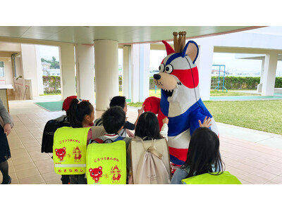 おおきなわ」の活動の一環として実施している「ゴーディーによる朝のあいさつ運動」において、2月はホームタウン沖縄市、うるま市、国頭村の小中学校を訪問し、あいさつ運動に参加いたしました。ご協力いただいた各学校の皆さま、ありがとうございました。
