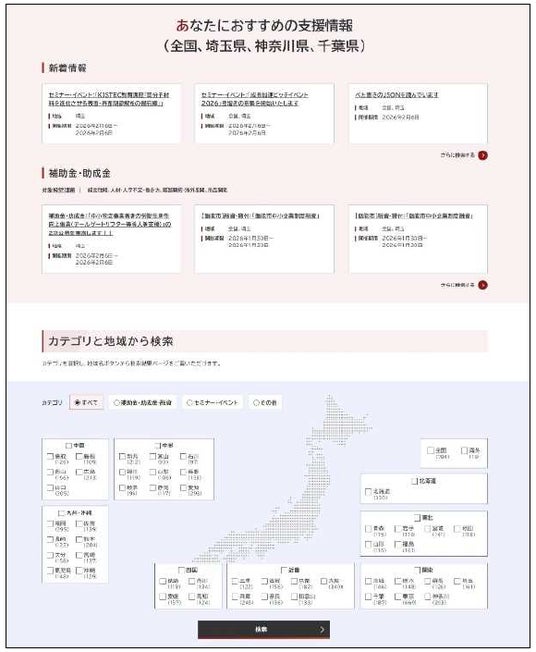 に記事や支援策が整理され、目的に沿った情報を効率よく探すことができます。