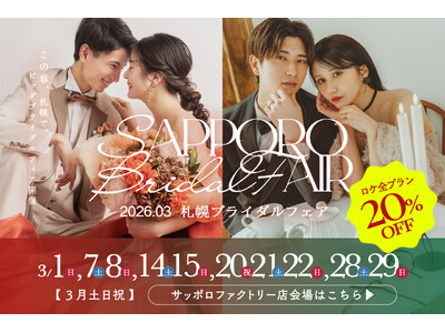 この度、2026年3月土日祝限定で、お得で楽しいブライダルフェアを札幌エリアの店舗で開催します。運命の一着を探している方、憧れのドレスを試着したい方は、この機会にぜひご来店ください。