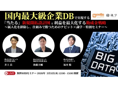 株式会社識学主催「国内最大級企業DBで実現する『当たる』新規開拓設計図と、利益を最大化する助成金戦略 ~属人化を排除し、仕組みで勝つためのナビット×識学・特別セミナー~」に登壇いたします。