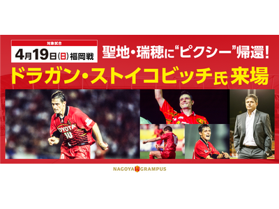 4月19日(日)、新しく生まれ変わったパロマ瑞穂スタジアムのこけら落とし試合となる、明治安田J1百年構想リーグ 地域リーグラウンド第11節 アビスパ福岡戦に、“ピクシー(妖精)”ことドラガン・ストイコビッチ氏が来場することが決定いたしましたのでお知らせいたします。