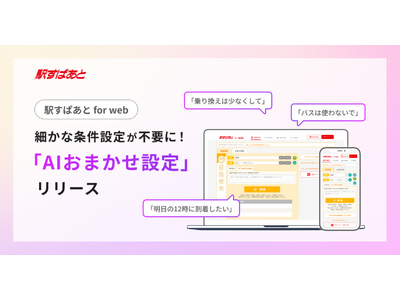 経路検索サービス「駅すぱあと」を提供する株式会社ヴァル研究所(本社:東京都杉並区、代表取締役:菊池宗史、以下「ヴァル研究所」)は、2026年3月3日(火)に「駅すぱあと for web」にて、移動の要望に関する自由な文章から自動で経路検索の条件設定を行う「AIおまかせ設定」機能の提供を開始しました。
