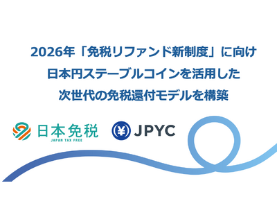 JPYC株式会社(本社:東京都千代田区、代表取締役:岡部 典孝、以下、JPYC)と、株式会社日本免税(本社:東京都江東区、CEO:石井 邦知、以下、日本免税)は、2026年11月に予定されている日本の免税制度のリファンド(事後還付)方式移行に向け、ステーブルコインを活用した画期的な免税還付モデルの構築を目的とする業務提携に合意いたしました。