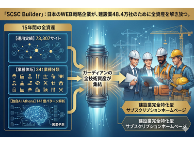 本サービスは、ガーディアンが15年超にわたり蓄積してきた73,307サイトの運用データ、341業種分類体系、独自AI「Athena」の141億パターン解析エンジン、独自開発CMS「OWLet」、セキュリティ基盤「SCAN DOG」、法令遵守サービス「SCSC Legal」── ガーディアンの全技術資産を建設業48.4万社のために最適化した、業界初※の「業種特化型サブスクリプションホームページ」です。