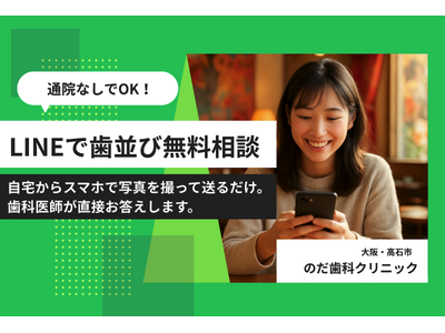 大阪府高石市ののだ歯科クリニック(院長:野田 憲)は、通院前にご自宅から気軽に専門的な相談ができる「LINEで歯並び・矯正無料相談」サービスを本格開始いたしました。