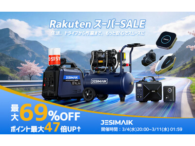 自動車・バイク用品および電動ツールを提供する人気ブランドJESIMAIK(ジェスマイク)は、楽天市場店と公式楽天市場店において、「楽天スーパーSALE」を3月4日(水)~3月11日(水)まで実施いたします。