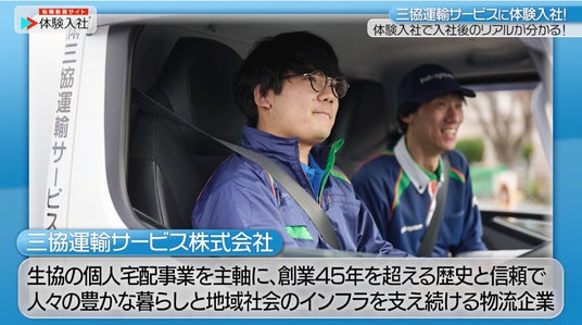 株式会社体験入社(本社:神奈川県鎌倉市、代表取締役:松本聖司)は、この度、生協の個人宅配事業を展開する株式会社三協運輸サービス(以下、三協運輸サービス)が、当社の提供する採用動画サービス「体験入社動画」を導入したことをお知らせいたします。この導入は、「入社前には“入社後のリアル”が見えにくい不安」という課題を解消し、三協運輸サービスが求める「自社にマッチした人材」の獲得をサポートいたします。