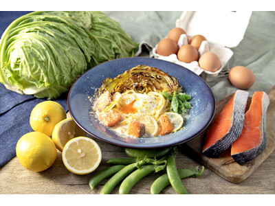 温暖な淡路島の恵まれた気候で育った新鮮な島キャベツと、北坂養鶏場から仕入れた国産鶏卵の北坂たまごを贅沢に使用し、春らしいレモンクリームソースで仕上げました。