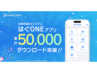 https://bpcom.jp/ 、以下、ベター・プレイス)は、2025年7月31日にリリースした「はぐくみ企業年金」の導入法人・加入者に向けた企業年金DXシステム「はぐONE」のスマートフォンアプリが、約半年で累計5万ダウンロードを突破したことをお知らせします。