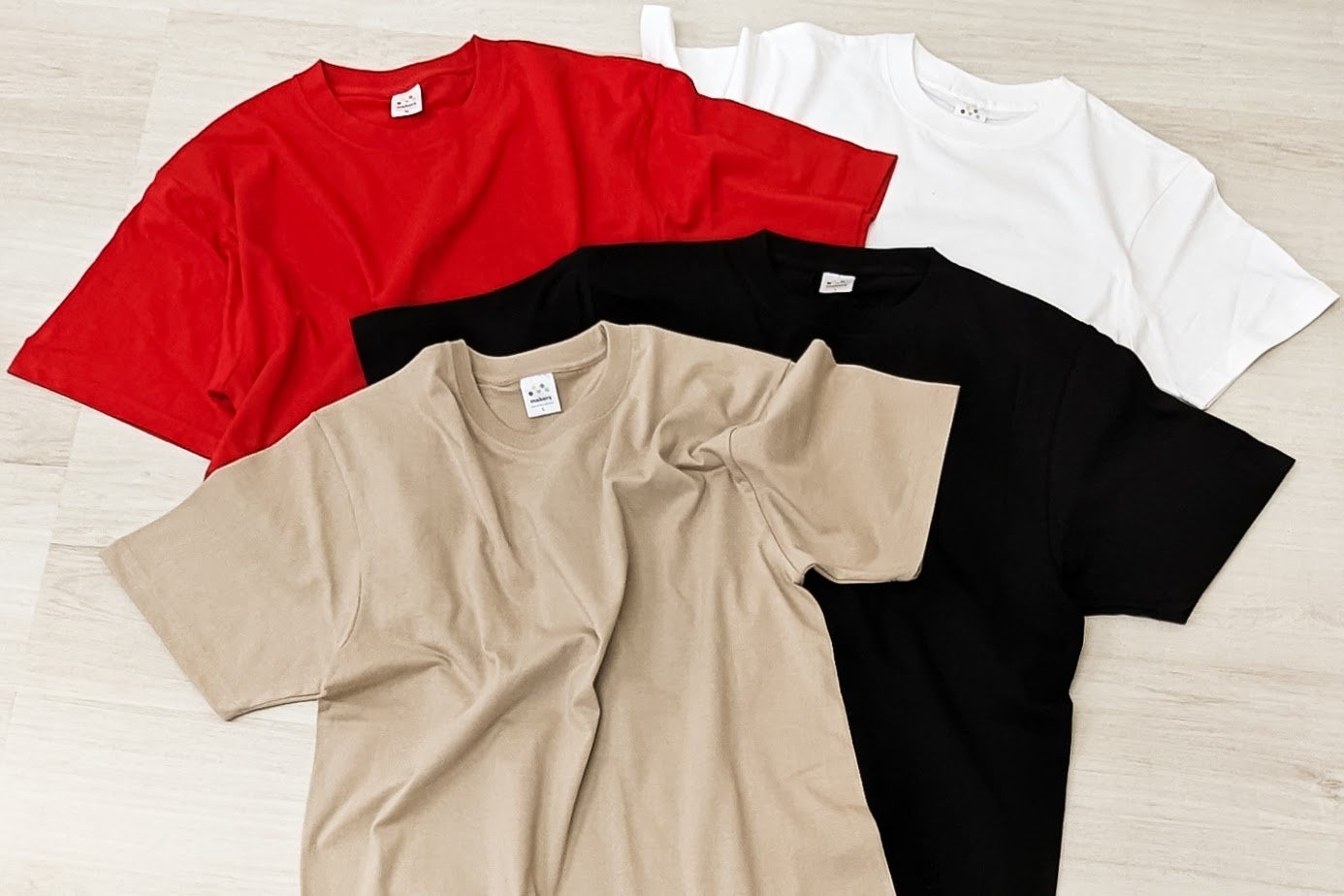 Tシャツは、プラスワンのプライベートブランド「makers(メイカーズ)」から4商品を追加。カラー展開を従来の白・黒から6色に拡充し、生地の厚みやポケットの有無など、豊富なバリエーションからお選びいただけるようになりました。