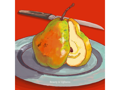 ジャケット写真はイラストレーター:さやえんどう氏による描き下ろし。赤一色の背景の中、皿の上には切り分けられた一つの洋梨が置かれている。緑と黄、そして熟れた橙がまだらに溶け合う表皮には、ところどころに黒い斑点も見える。その質感や色合いの生々しさは、本楽曲が内包する問いを、言葉ではなく視覚によって提示しているようにも見える。「美しさ」とは何かを定義するのではなく、その輪郭が揺らぐ瞬間をそっと差し出す一曲となっている。ぜひ、各音楽配信サービスでチェックしてほしい。
