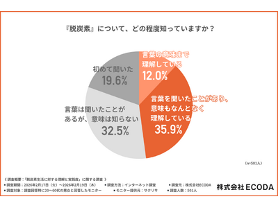 株式会社ECODA(本社:東京都渋谷区、代表取締役:平間 一也、https://ecoda-corp.com/)は、20~60代の男女を対象に、「脱炭素生活に対する理解と実践度」に関する調査を行いました。