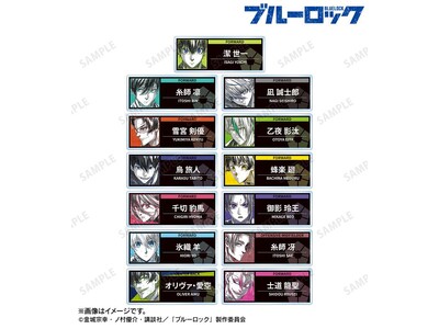 潔 世一、糸師 凛、凪 誠士郎、雪宮 剣優、乙夜 影汰、烏 旅人、蜂楽 廻、千切 豹馬、御影 玲王、氷織 羊、糸師 冴、オリヴァ・愛空、士道 龍聖のイラストを新たなタッチで魅力的に表現し、アクリルネームプレートに仕上げました。