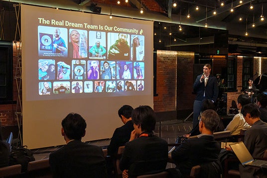 ファイナルピッチでは、300件以上の応募の中から選出された世界各国のスタートアップ10社と社内公募1件の計11チームが登壇し、ファイナリストのビジョンを五感で体験できる新たな試みとして、1分間の「サウンド・ストーリーテリング」を実施しました。ファイナリストの想いやパッションに呼応し、ライブミュージシャンがジャズセッションのように演奏し、ビジョンをより立体的に表現しました。