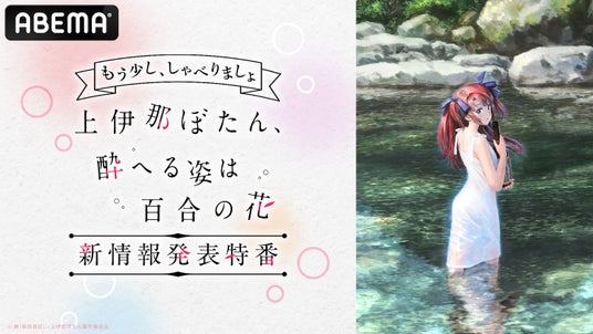 新しい未来のテレビ「ABEMA」は、2026年4月より放送を開始する新作TVアニメ『上伊那ぼたん、酔へる姿は百合の花』の“情報解禁特番”第2弾「もう少し、しゃべりましょ|TVアニメ『上伊那ぼたん、酔へる姿は百合の花』新情報発表特番」を、2026年3月9日(月)夜9時より、独占無料生放送いたします。
