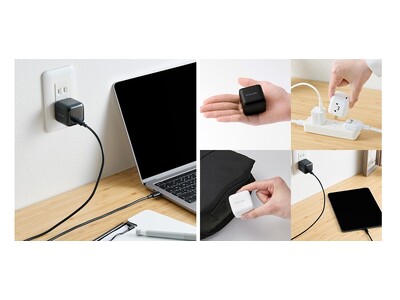GaN II(窒化ガリウムIC)採用により、高出力ながらコンパクトサイズを実現しました。カバンのポケットなどにも収まり、外出や出張などへの持ち運びの際も便利です。ケーブル別売りモデルに加え、USB Type-C仕様の充電ケーブルが付属するモデルもご用意しています。最大65Wの高出力とコンパクトさを両立し、これひとつでノートパソコンの充電もできる本製品を、ぜひご活用ください。
