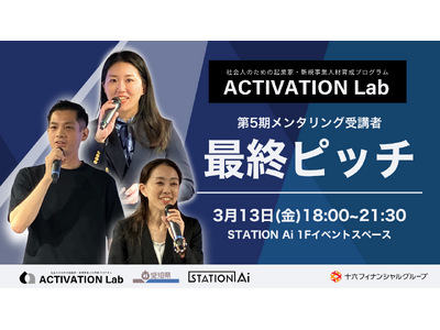 STATION Ai株式会社(ステーション・エーアイ、本社:名古屋市昭和区、代表取締役社長 兼 CEO:佐橋 宏隆)は、愛知県主催・STATION Ai株式会社が運営する社会人向け起業家育成プログラム「ACTIVATION Lab」(第5期)メンタリング受講者の最終ピッチ大会を2026年3月13日(金)に開催します。本大会の開催にあたり、観覧者を募集します。