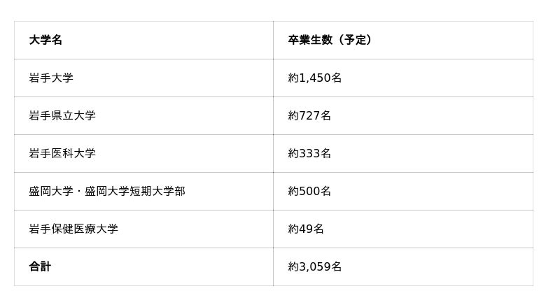 - 岩手大学、岩手県立大学、岩手医科大学、盛岡大学・盛岡大学短期大学部、岩手保健医療大学