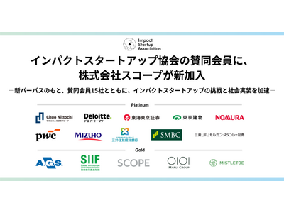 「社会課題の解決」と「持続可能な成長」を両立させ、ポジティブな影響を社会にもたらすことを目指すインパクトスタートアップ協会(Impact Startup Association 、以下 ISA)は、このたび、株式会社スコープ(本社:東京都千代田区、代表取締役社長:横山 繁、以下 スコープ)を新たな賛同会員(ゴールド会員)として迎えました。