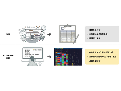 こうした背景から、多くの条件を踏まえた運行ダイヤの作成業務において、生成AIソフトウェア「Kasanare」を用いたAIエージェントの有効性についての検証を開始しました。
