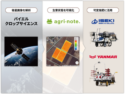 バイエル クロップサイエンス株式会社(東京都千代田区、代表取締役社長:大島 美紀、以下バイエル クロップサイエンス)と、ウォーターセル株式会社(新潟県新潟市、代表取締役社長:渡辺 拓也、以下ウォーターセル)、井関農機株式会社(愛媛県松山市、代表取締役社長:冨安 司郎、以下井関農機)、ヤンマーアグリ株式会社(岡山県岡山市、代表取締役社長:所司 ケマル、以下ヤンマーアグリ)は、4社の技術と知見を活用し、衛星データを基に圃場の生育状況を可視化し、適期作業の実現から可変施肥による肥料の効率的な使用までを支援する機能を共同開発しました。本成果を活用し、ウォーターセルは「アグリノート 衛星リモートセンシングサービス」のお試し版を2026年3 月5 日より提供開始します。