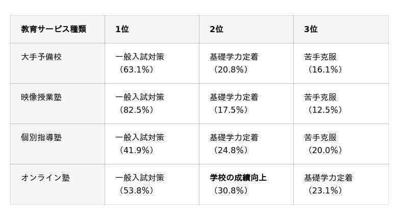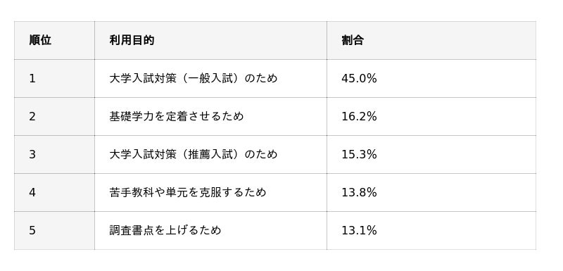 大学入試対策を主目的に利用される教育サービスのうち、