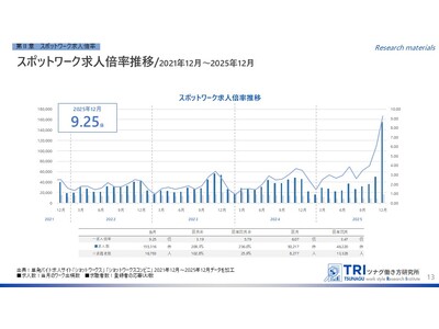 RPO(採用業務代行)・採用コンサルティングを行う株式会社ツナググループ・ホールディングス(本社:東京都中央区、代表取締兼執行役員役社長:米田 光宏)を母体とする、多様な働き方の調査研究機関「ツナグ働き方研究所(拠点:東京都中央区、所長:大野 博司)」は、ここ数年で広がりを見せる「短時間・単発で働くスポットワーカーの市場」について定点観測する「スポットワークマーケットデータレポート」を毎月発表しています。