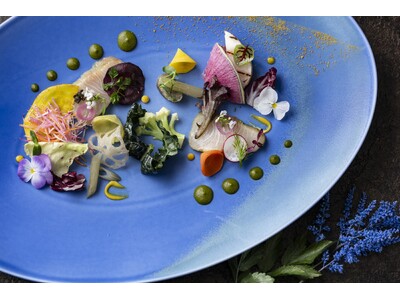 馬肉のタルタルのほか、九州の豊かな大地を思わせる約40種の新鮮な野菜とハーブを使用したシェフ特製の前菜をお召し上がりいただけます。また、その日の水揚げに応じて取り寄せる鮮魚は、素材の旨味を最大限引き出す調理法で仕上げております。