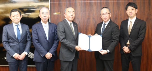 写真左から:西武しんきんキャピタル株式会社 代表取締役 宇佐美大典/ 当金庫常務理事 小町孝/当金庫理事長 高橋一朗/コミュニティ・バンク京信(京都信用金庫) 理事長 榊?田隆之氏/株式会社京信ソーシャルキャピタル 代表取締役 国本丈弘氏