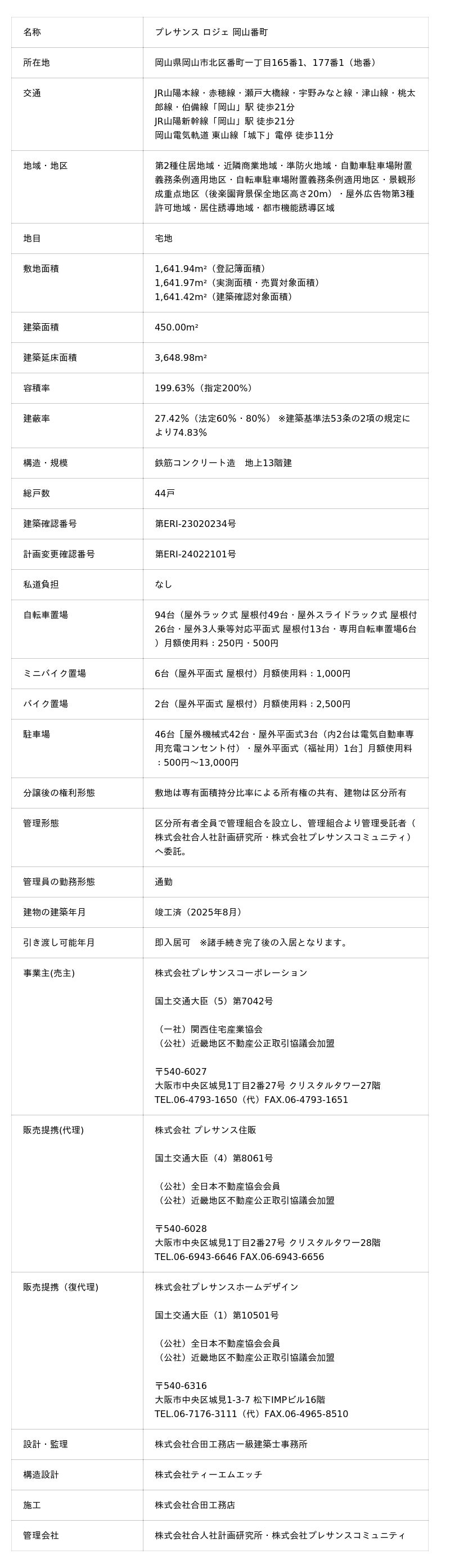 ※本記事内では物件概要をすべて記載できないため、詳細につきましては、公式サイトの物件概要ページをご確認ください。