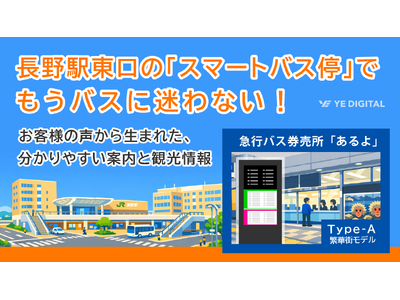 株式会社YE DIGITAL(本社:北九州市小倉北区、代表取締役社長:玉井裕治、以下、YEデジタル)が提供する「スマートバス停」が、長電バス株式会社(本社:長野県長野市、代表取締役:鈴木立彦、以下、長電バス)により導入され、2025年12月6日(土)より長野駅東口・急行バス券売所「あるよ」にて運用されています。お客様から