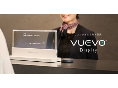 「VUEVO Display(ビューボ ディスプレイ)は、会話をリアルタイムに翻訳・字幕化し、透明ディスプレイに表示する多言語コミュニケーション支援ツールです。